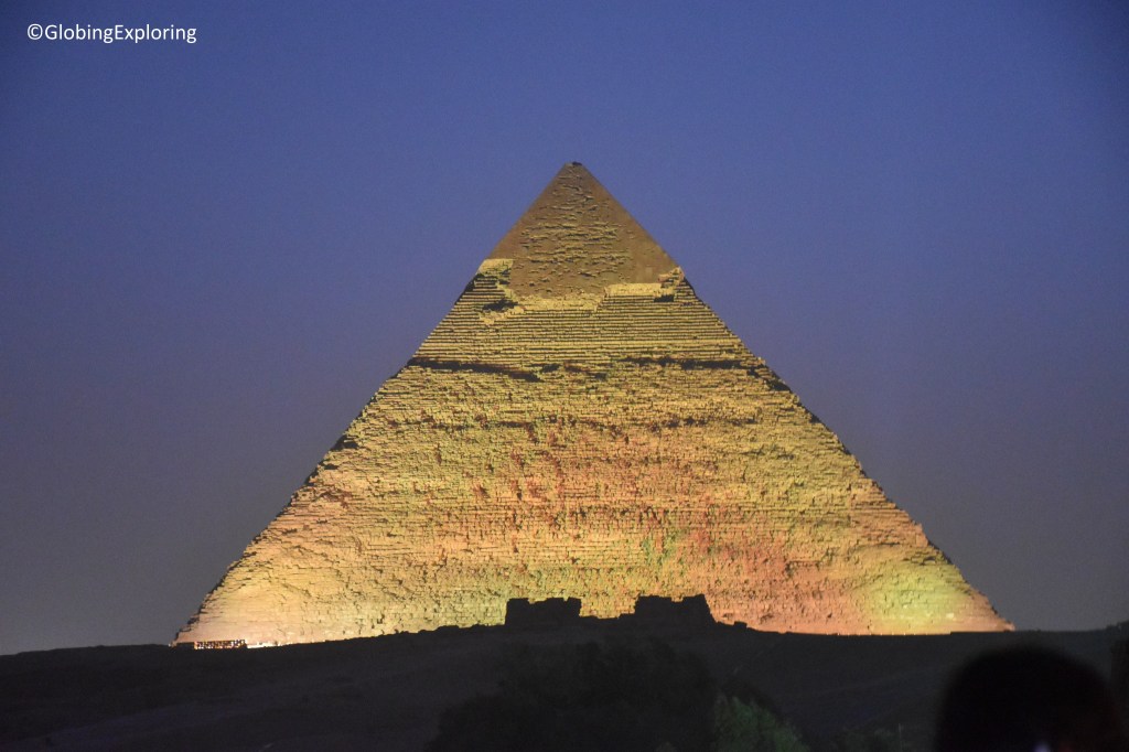 Chaque soir devant les pyramides se tient un spectacle de lumière. Il coûte 40 dollars par personne. Je trouve ça énorme! Mais pas de panique j’ai une astuce …