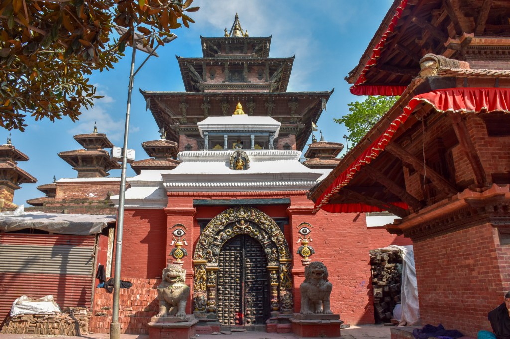 Comme beaucoup de bâtiments et monuments au Népal, on ne peut que constater les ravages du tremblement de terre de 2015. C’est impressionnant car on peut y voir 2 monuments/bâtiments l’un à côté de l’autre; l’un quasiment ravagé et l’autre en excellent état!