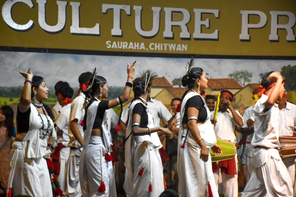 Après avoir jonglé avec les caprices de la météo, on s’est réchauffés, reposés et puis dirigés vers l’incroyable spectacle culturel Tharu organisé quotidiennement à Sauraha, à seulement 5 minutes à pied de notre hôtel.